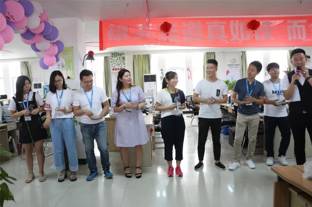 由在青峰10年的老員工給在青峰9年的員工送上生日蛋糕